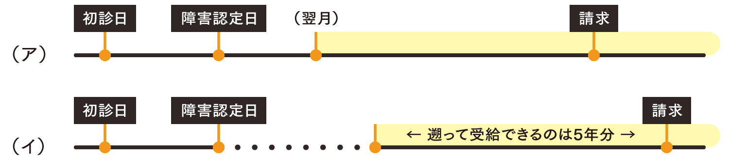 ただし、遡及して受けられる年⾦は、時効により5年分が限度です(イ)。